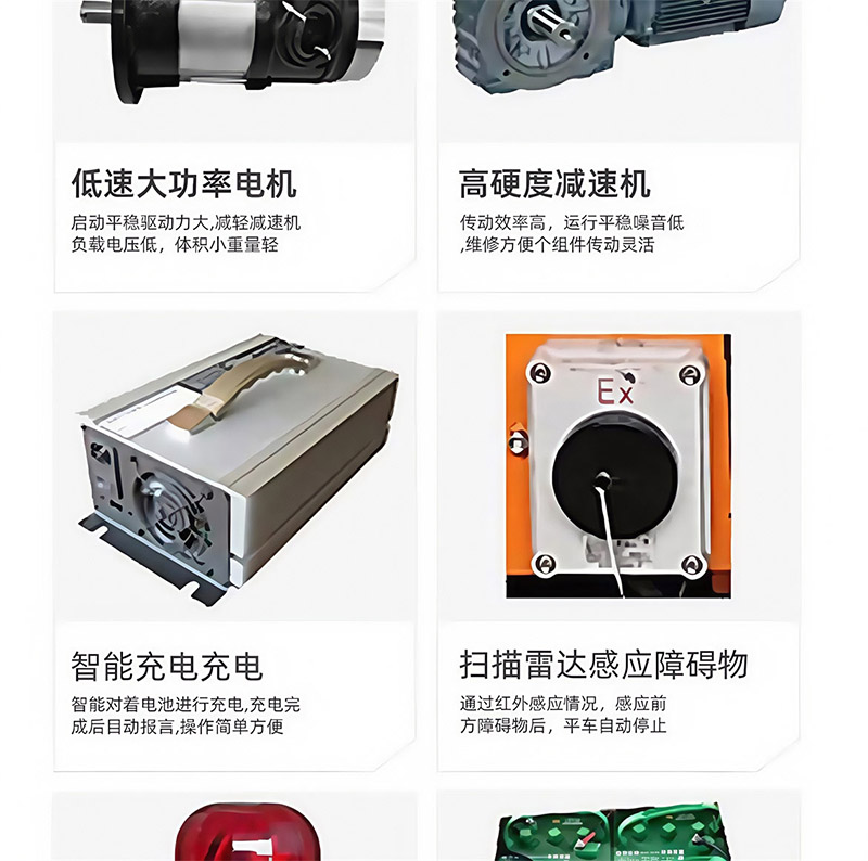 5、供电系统:蓄电池选用高性能牵引用蓄电池,大电流放电工况下仍保持长寿命。充电采用全自动智能充电机。一键操作,充满自动断电。充电机具有分阶段准恒压、恒流自动充电功能,其充电曲线完全符合铅酸蓄电池充电特性,并具有短路、过流、电池反接、空载等完善的保护功能,供电系统具有电量监测,馈电报警提示功能。