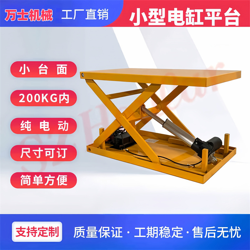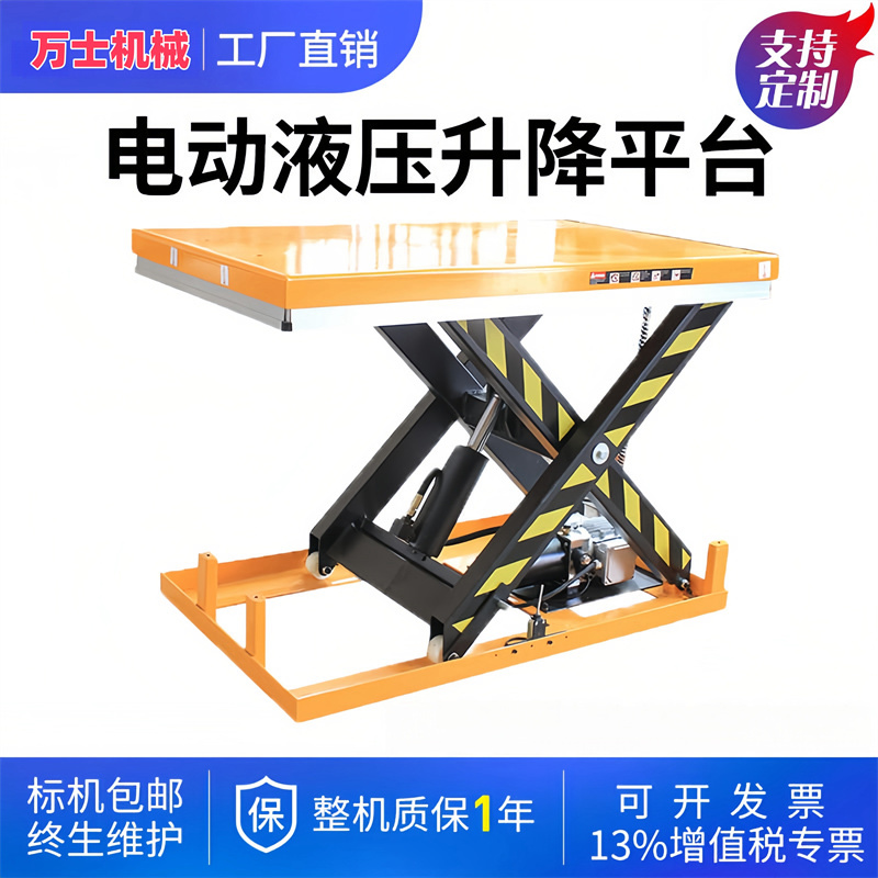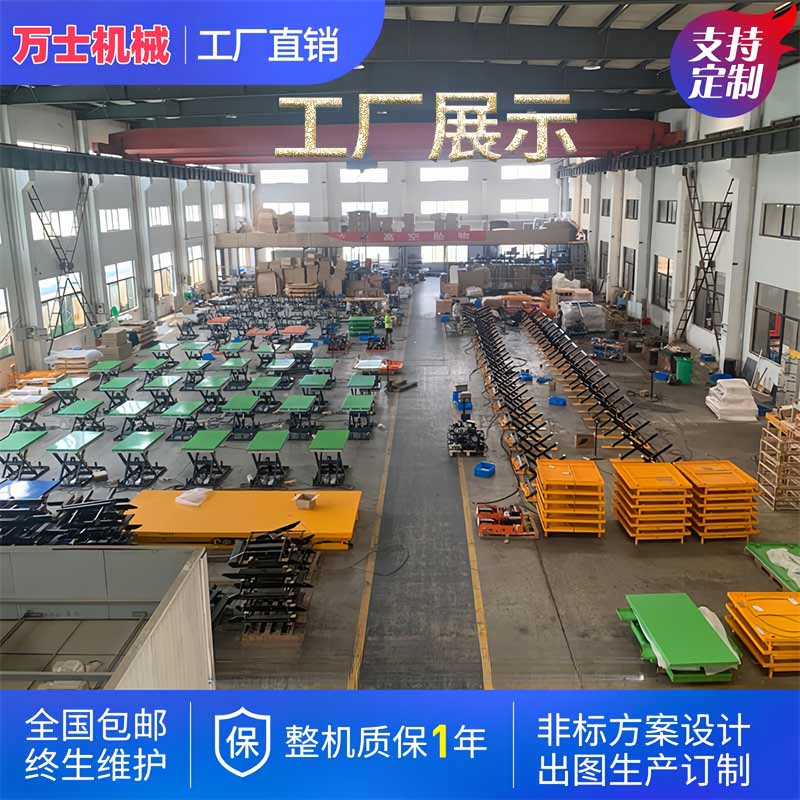 万士机械专业生产剪叉式升降机,用料实在,可定做,移动和固定式两大类,可升降,可平移,本类产品采用钢架结构或高强度钢板结构承载能力由 0.1 至 100 吨不等,产品尺寸及设备尺寸可根据用户需求定做。操作方式可分为上下控制和地面单人控制,也可点升点降、多层控制。为满足各种特殊要求而专门设计的剪叉式货梯在特殊工况条件下与其它设备配套使用,能达到更好的匹配性和兼容性。
