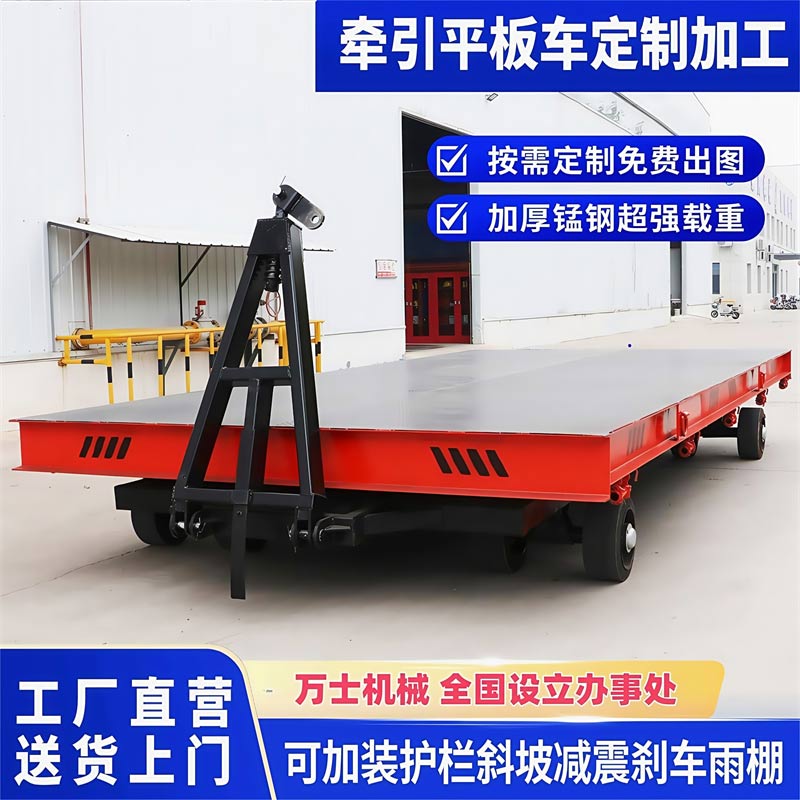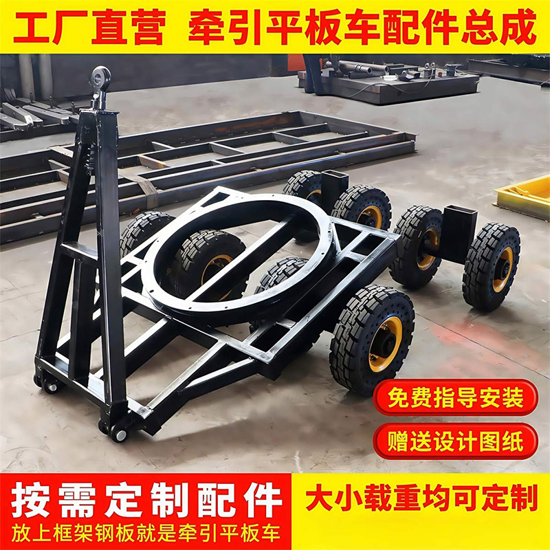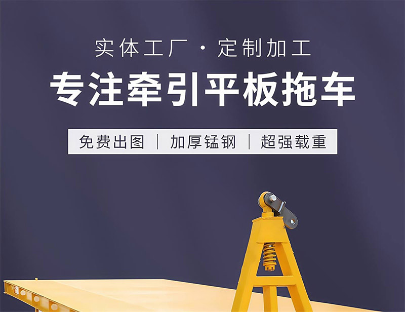 平板拖车通常由平板部分和牵引装置组成。平板部分用于承载货物,而牵引装置则用于连接牵引车或叉车,实现拖动功能。平板拖车可以根据客户需求进行定制,包括长度、宽度和高度等参数,并且可以添加围栏、减震、刹车等配件以适应不同的运输需求2。