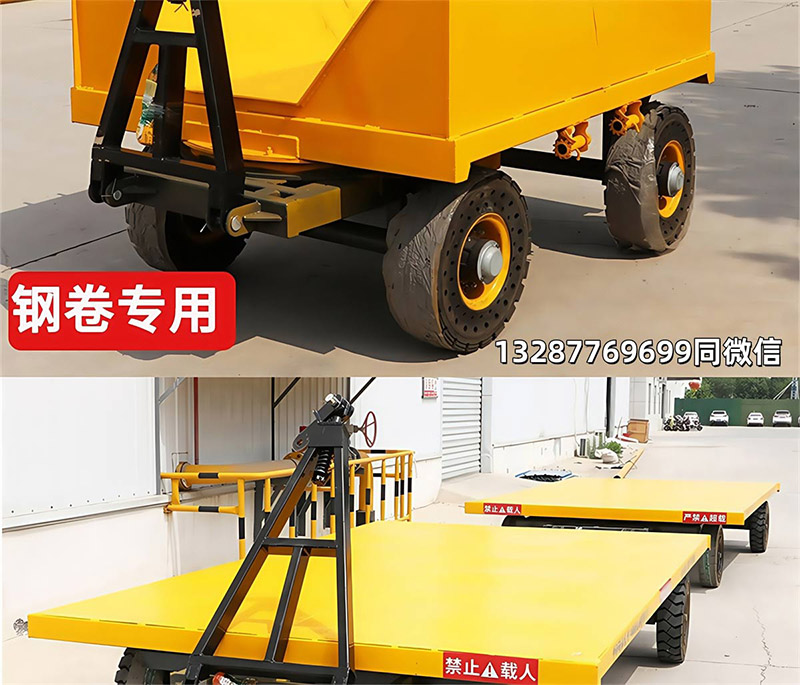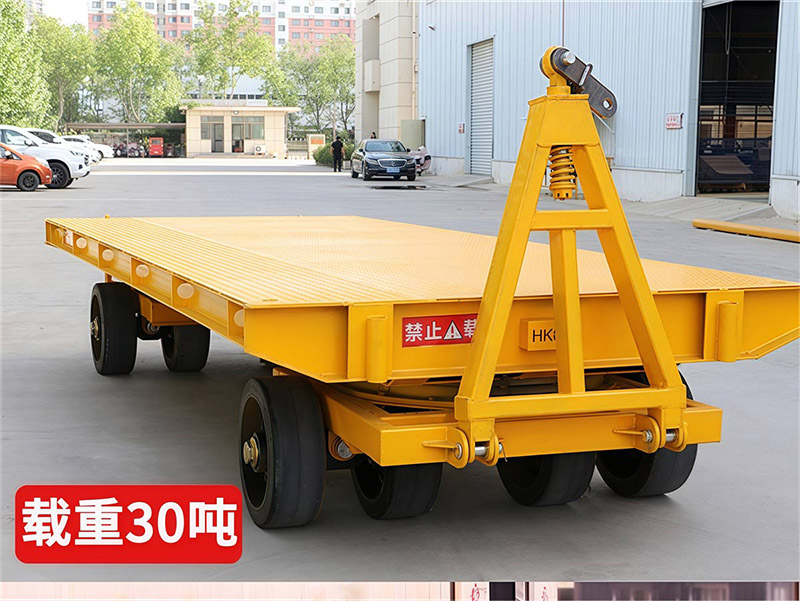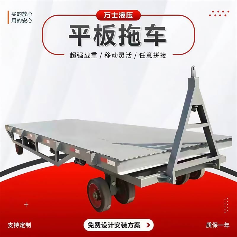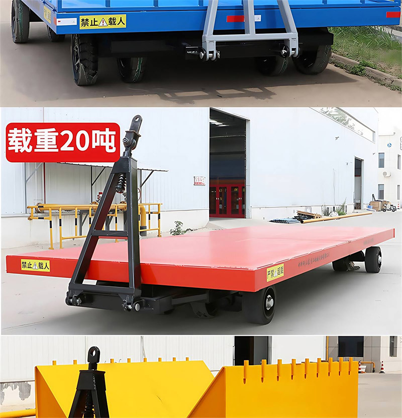 平板拖车是一种无动力装置的运输工具,通常由牵引车或叉车牵引,适用于工厂、码头、港口、仓库等场区内大宗货物的短途周转运输。平板拖车本身没有动力,需要外部动力源来驱动,这使得它非常灵活且适用于各种工业场所12。