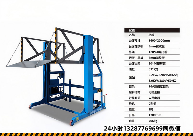 特别定制移动式升降平台是为满足顾客实际需要而特别定制的移动式升降平台。该平台具备移动式升降平台类的所有优点。该系列升降平台具有移动灵活,升降平稳,操作方便等优点。可选为二相(220V)、三相(380)、电瓶(24V或48V)、自行式、柴油机、汽油机、自为升降动力,特殊场所也可选用防爆电机、电器等。该产品控制方式为电动上、下控制升降,手、电两用或遥控器控制,在停电时仍可使用。该系列液压升降机具有移动灵活,升降平稳,载重量大,操作方便等特点。